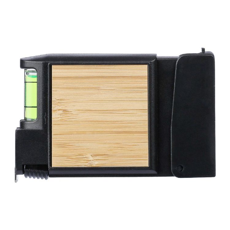 ABS Maßband mit Bambusdetails und Skala. Länge 3 Meter. Enthält 5 Bits zur Verwendung als Schraubendreher. 12 mm Metallsplitter. Einzeln verpackt in braunem Karton.