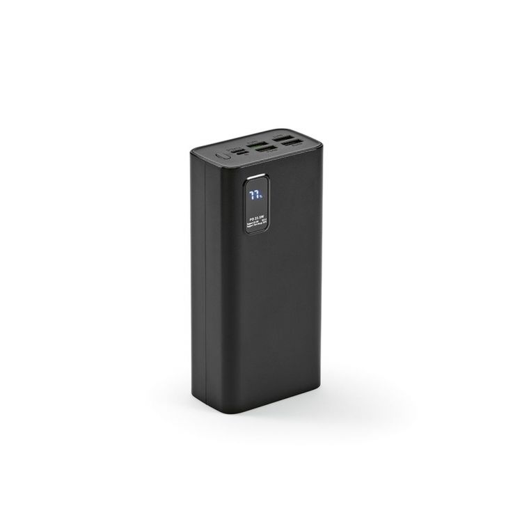 Hertz Powerbank aus rABS mit 30.000 mAh Kapazität und 22.5W Ausgangsleistung. Verbindung über USB-C und USB-A in beide Richtungen möglich. Das LED-Display zeigt den Energieverbrauch übersichtlich an. Eine Kombination aus umweltfreundlichem Luxus und starker Leistung. Dank der hohen Kapazität können mehrere Geräte und sogar einige Laptops geladen werden. Wird einzeln in einem Kraftkarton verpackt., in schwarz farbe