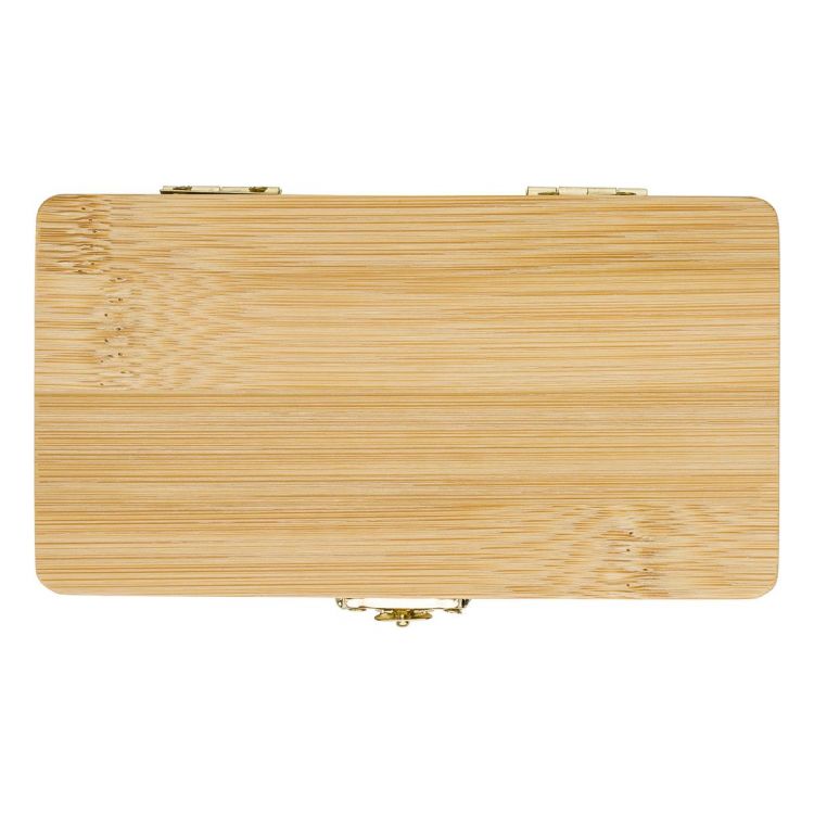 Bambus-Werkzeugsatz mit 25 Teilen. 24 Bits und ein Halter. Einzeln verpackt in einer braunen Kartonbox.