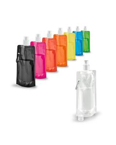 460 ml PE-FaltflascheFaltbare Trinkflasche aus PE (460 mL) mit Karabiner, Deckel und Push-Pull System
