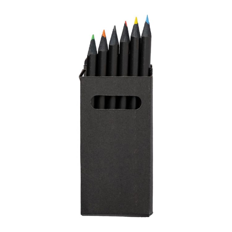 Buntstifte, 6er-Set, in einem recycelten schwarzen Karton.