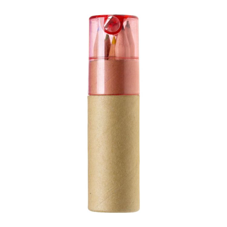 Buntstiftset im Pappköcher, 6-tlg., mit Anspitzer im Kunsststoffdeckel.