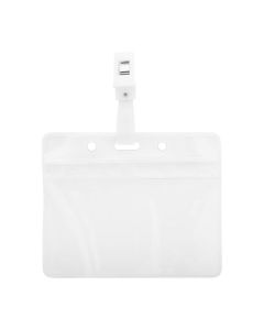 NamensschildGestanzter Ausweishalter aus PVC mit Befestigungsclip in Weiß. Erhältlich in horizontaler und vertikaler Ausführung.