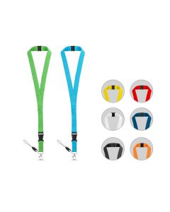 Lanyard aus PolyesterLanyard aus Polyester, 20 mm breit mit einem Schlüsselband und einer abnehmbaren Schnalle. Karabinerhaken aus Metall