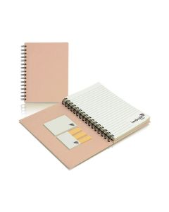 NotizbuchÖkologisches Spiral-Notizbuch mit Weizenstroh-Kunststoffüberzug, 70 linierten Blättern aus Recyclingpapier und Stifthalter im A5-Format.