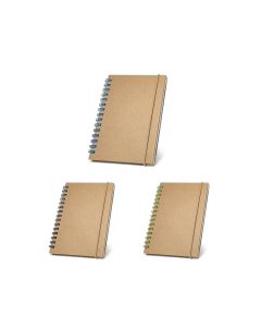 NotizbuchRingnotizbuch aus unserer Naturlinie mit farbigen Ringen. Harte Einbände aus recyceltem Karton und einem Gummiband in Naturfarben. Mit 80 Blättern im Streifen-Layout und Öko-Design.
