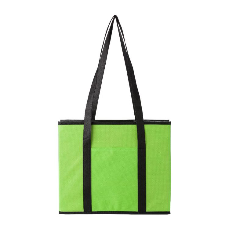 Car-Organizer aus Non-Woven, faltbar, mit Fronttasche, 2 langen und 2 kurzen Tragegriffen und Kartonboden.