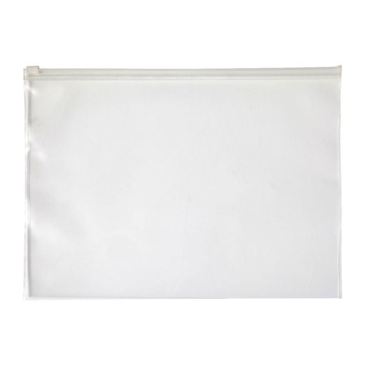 Dokumententasche aus PVC, transparent, ca. DIN A4-Format, mit Zipper.