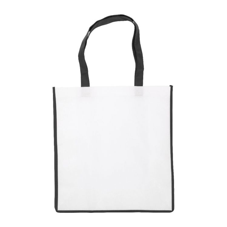 Einkaufstasche aus Non-Woven, inklusive 13 cm Boden- und Seitenfalte, farbige Applikationen.