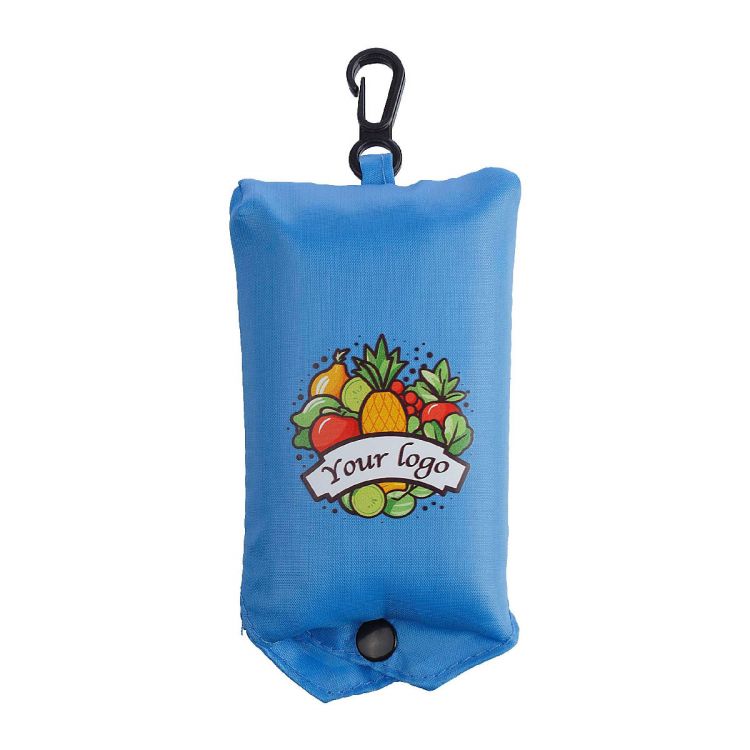 Einkaufstasche aus Polyester (190T), verwandelbar in Mini-Taschen-Format, kurze Henkel, Kunststoff-Karabinerhaken.