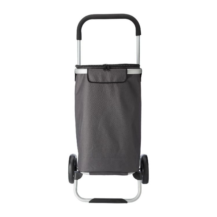 Trolley aus Polyester (600D), mit innenliegendem Kühlfach, Reißverschluss, Aluminiumrahmen und Griff aus EVA-Schaum.