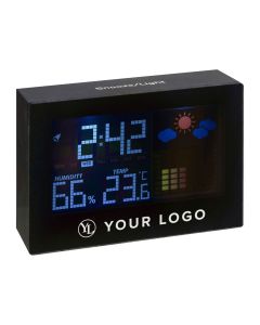 WetterstationDigitale Wetterstation mit farbigem Display. Funktionen: Uhr, Wecker, Thermometer, Hydrometer und 12 Stunden Temperaturtrend-Speicher. Exkl. Batterien (2x AAA)