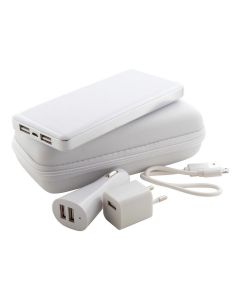 Power BankPower Bank mit hoher Ladekapazität - 10.000 mAh. Mit dreifachem USB-Ausgang zum gleichzeitigen Laden von bis zu 3 Geräten, LED-Ladestatusanzeige, geschwungenes Design mit weißem Gehäuse und farbigen Seiten, mit großer Beschriftungsfläche. Präsentiert in einer attraktiven Designbox.Die auf allen unseren externen Zusatzbatterien angegebenen Kapazitäten sind real und beinhalten alle Batterien der Klasse A und nicht recycelte Batterien mit einer Nutzungsdauer von mindestens 500 Ladezyklen und gemäß den CE-Vorschriften. Darüber hinaus werden sie gemäß den RoHS-Normen und in Übereinstimmung mit den folgenden Sicherheitsanforderungen hergestellt: Überladungsschutzsystem der Powerbank. Vollständiges Entladeschutzsystem für eine längere Lebensdauer der Powerbank. Sperrsystem zur Vermeidung von Kurzschlüssen. Konstantes Ladungstransfersystem, je nach Kapazität des Zielgerätes.