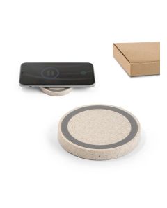 LadegerätKabelloses Ladegerät aus Naturlinie. Schale aus Weizenstroh, um die Verwendung natürlicher Rohstoffe zu fördern und Schadstoffemissionen zu reduzieren. 2.100 mA , doppelter USB-Ausgang zum gleichzeitigen Laden von bis zu 3 Geräten (1 Gerät drahtloses Laden und 2 Geräte über Kabel). Mit rutschfestem Sockel und kompatibel mit Geräten, die mit drahtloser Ladetechnologie ausgestattet sind. Präsentiert in einer attraktiven, umweltfreundlichen Design-Box. (natürlich farbe)