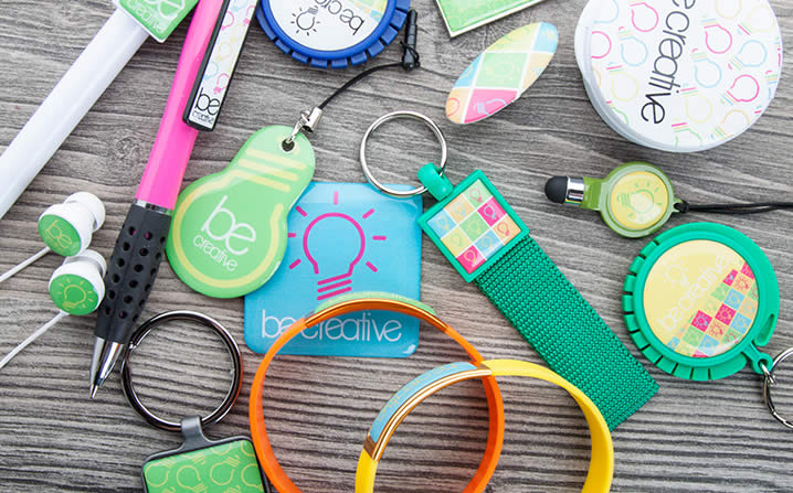 Epoxidharz wird insbesondere für Werbeartikel wie Pins, USB-Sticks, Schlüsselanhänger, Kugelschreiber und vieles mehr verwendet.