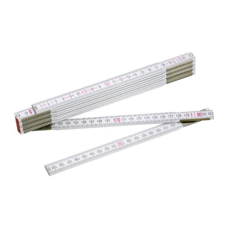 Faltbares Holzlineal von Stabila mit einer Gesamtlänge von 2 Metern. Die Skala ist in cm. Das Lineal ist mit einer Schutzschicht versehen. Mit CE- und Metrologie-Kennzeichnung und EG-Baumusterprüfbescheinigung. Genauigkeitsklasse 3.