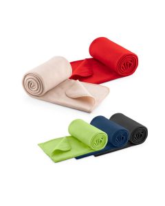 DeckeDecke aus 240g/m2 Polyester, sehr bequem, weich und warm. Erhältlich in verschiedenen Farben und präsentiert in einem Band mit einer Karte zum einfachen Bedrucken, in einer individuellen recycelten Tasche.