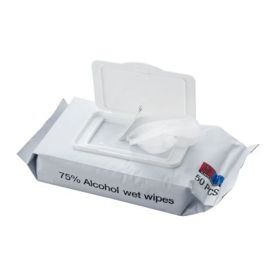 Feuchttücher10 Stück Feuchttücher im wiederverschließbaren Beutel mit weißem Verschluss. Größe der ungefalteten Tücher: 19×16 cm. Ideal für Tampondruck oder vollfarbigen Vinyl-Aufkleber, in weiß farbe
