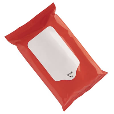 Feuchttücher10 Stück Feuchttücher im wiederverschließbaren Beutel mit weißem Verschluss. Größe der ungefalteten Tücher: 19×16 cm. Ideal für Tampondruck oder vollfarbigen Vinyl-Aufkleber, in weiß farbe
