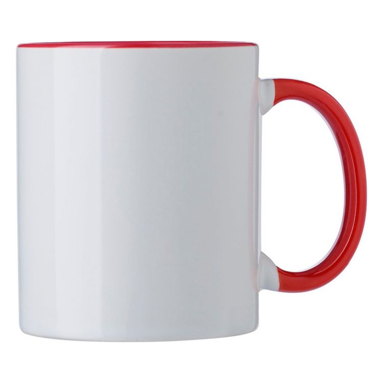 Keramikbecher (300 ml) mit farbigen Details. Dieser Artikel ist besonders für den Sublimationsdruck geeignet. Einzeln verpackt in einer Geschenkbox.