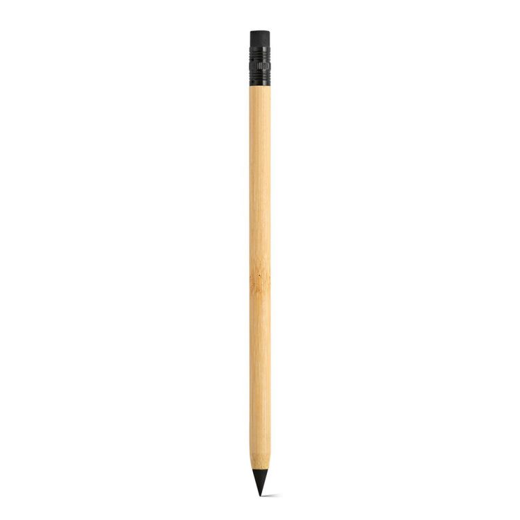 Kerouac tintenloser Stift mit Bambusschaft ist eine Ode an die Umweltfreundlichkeit. Dieser Endlosstift verfügt über einen Radiergummi und ist elegant in einer schwarzen Geschenkbox aus recyceltem Papier verpackt., in natürlich farbe