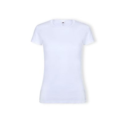 Damen T-shirtDamen T-shirt aus 100% Strickjersey und Baumwolle (190g/m²), tailliert mit kardiertem Baumwollfaden, dünnem Jersey-Kragen mit Satin-Verstärkungsband und Doppelnaht an Ärmeln und Saum