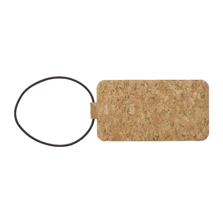 Gepäckanhänger aus Kork mit Gummiband. Karteneinschub für persönliche Daten (Name, Adresse, Stadt/Staat und Telefonnummer). Einzeln verpackt im Polybeutel.