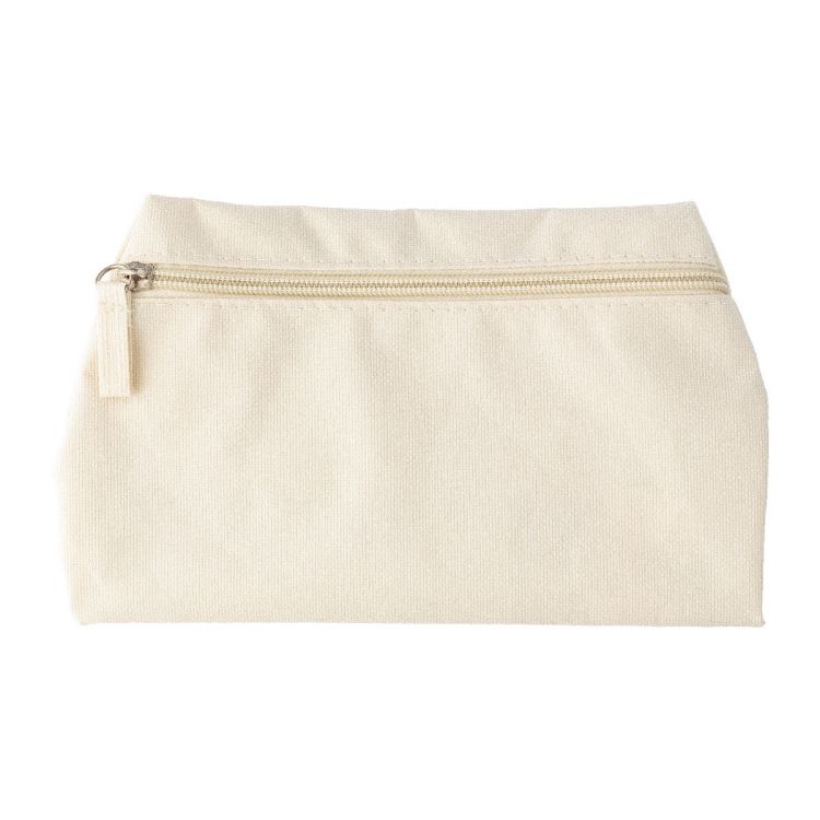 Kosmetiktasche aus Polyester (600D), mit Reißverschluss und Zipper mit Zugband in Materialfarbe.