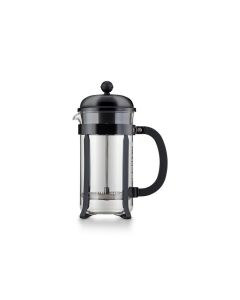 Kaffeebereiter 350mlFrench-Press-Kaffeebereiter (350ml) mit hochwertigem Glasbehälter aus Borosilikat. Das Glas ist hitzebeständig und verändert nicht den natürlichen Geschmack des Kaffees . Außerdem verfügt er über einen Stößel aus Edelstahl, der verhindert, dass die Bohnen während der Zubereitung aus dem Kessel fallen. Das Gestell und der Deckel, ebenfalls aus rostfreiem Stahl, werden verschiedenen Verchromungsprozessen unterzogen, um eine dauerhafte und glänzende Oberfläche zu erhalten. Der Griff aus PP mit matter Oberfläche liegt gut in der Hand und unterstreicht die Qualität des Designs. Das French-Press-System wird von Kaffeeliebhabern auf der ganzen Welt wegen seiner einfachen Zubereitung und seines reinen Geschmacks geschätzt. Der Chambord-Kaffeezubereiter hat ein zeitloses Design und wird mit hoher Handwerkskunst hergestellt, der seine Anhänger erwartet. Er hat ein Fassungsvermögen von bis zu 350 mL. Wird in einem Geschenkkarton geliefert