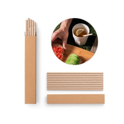 Strohhalm SetSet aus Papierstrohhalmen mit spezieller Anti-Feuchtigkeits-Behandlung. Inklusive 10 Strohhalme, präsentiert in einer recycelten Pappschachtel. Erhältlich in den Ausführungen Natur und Braun.