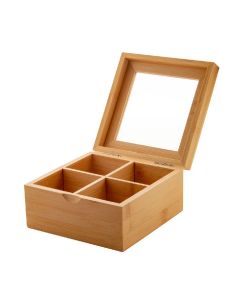 Bambus-TeeboxTeeaufbewahrungsbox aus Bambus mit transparentem Acryldeckel und 4 Fächern