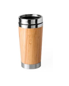 Reisebecher aus Bambus und Edelstahl 500 mlBecher (500 mL) aus Bambus und Edelstahl, doppelwandig luftisoliert mit Schiebeverschluss. Geliefert in einer Geschenkschachtel aus Kraftpapier. Da das Produkt aus natürlichen Materialien hergestellt wird, können Farbe des Produkts sowie das Druckergebnis von Produkt zu Produkt unterschiedlich sein. Produkt in natürlich farbe