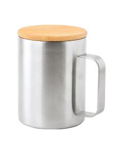 Becher aus 90% recyceltem Edelstahl mit Bambusdeckel 420 mLVakuumisolierter doppelwandiger Becher aus Edelstahl (90% recyceltem) mit Bambusdeckel. Fassungsvermögen bis zu 420 mL. Wird in einem Geschenkkarton aus Kraftpapier geliefert. Da das Produkt aus natürlichen Materialien hergestellt wird, können Farbe des Produkts sowie das Druckergebnis von Produkt zu Produkt unterschiedlich sein