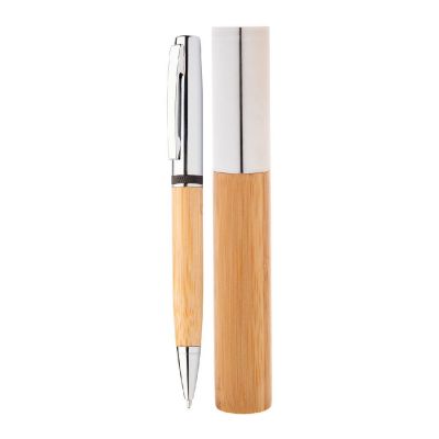 KugelschreiberKugelschreiber mit Bambusschaft, Metallclip und verchromten Beschlägen. Mit Drehmechanismus und in blauer Tinte. Materialien wie Bambus fördern die Nutzung natürlicher Rohstoffe und reduzieren so den Schadstoffausstoß. Es stammt von einer äußerst widerstandsfähigen und vielseitigen Pflanze mit schnellem Wachstum und Regeneration, was es zu einer hervorragenden Alternative zur Verwendung von herkömmlichem Holz macht. (natürlich farbe)