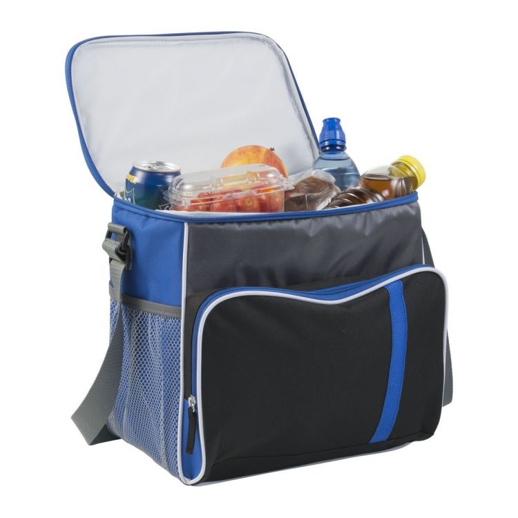 Kühltasche aus Polyester (600D), mit RV-Frontfach und RV-Hauptfach, zwei Netzfächern und verstellbarem Schultergurt.