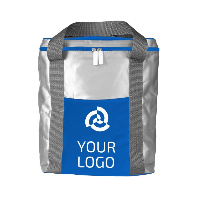 Kühltasche aus Polyester (420D), passend für 6 x 1,5 l Flaschen, mit RV-Hauptfach und Fach auf der Vorderseite.