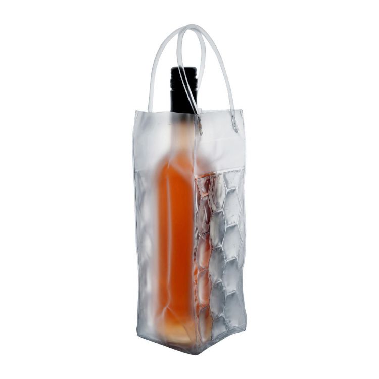 Kühltasche aus PVC, transparent mit Silikon-Kühlgel und Tragegriffen.