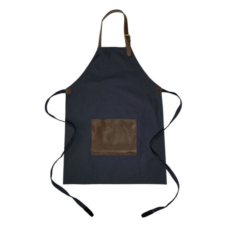 Leinenschürze (450 g/m2) mit rPET-PU-Tasche und verstellbarem Nackenband. Wasserabweisend.