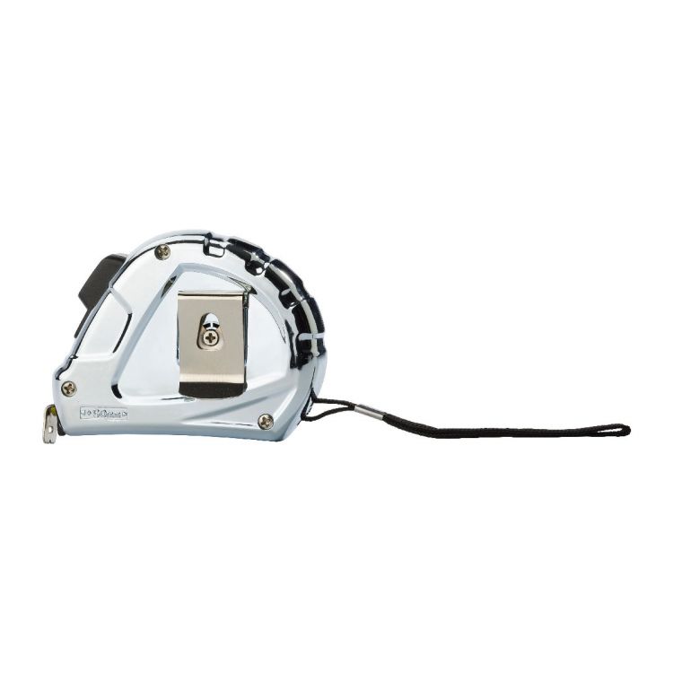 Maßband aus Kunststoff, Messbereich 5 m, mit Handschlaufe, Feststeller und Gürtelclip. Nur in Zentimetern.