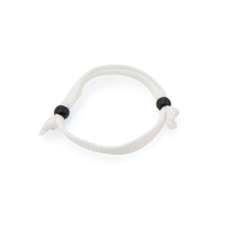 Verstellbares Polyester-Armband in einer Vielzahl von Farben. Mit geknoteten Enden und Einstellringen.