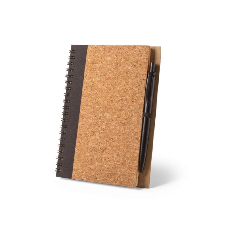 VICENTE - B6-Notizbuch aus Kork und Recyceltes Polyester (100% rPET) mit Kugelschreiber ist verfügbar