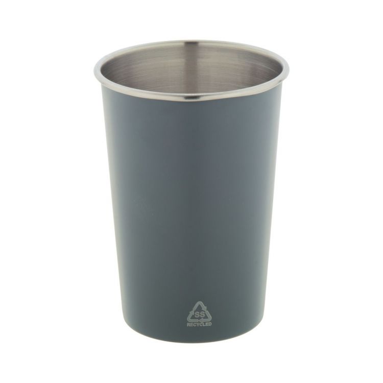 Einwandiger Becher aus recyceltem Edelstahl. Füllmenge: 350 ml.