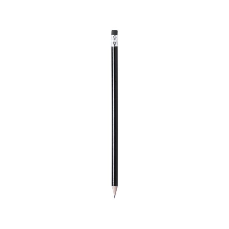 Holzstift mit glänzender Oberfläche. Mit rundem Griff und passendem Radiergummi. Erhältlich in einer Vielzahl von Farben. Schwarze Mine und scharfe Spitze.