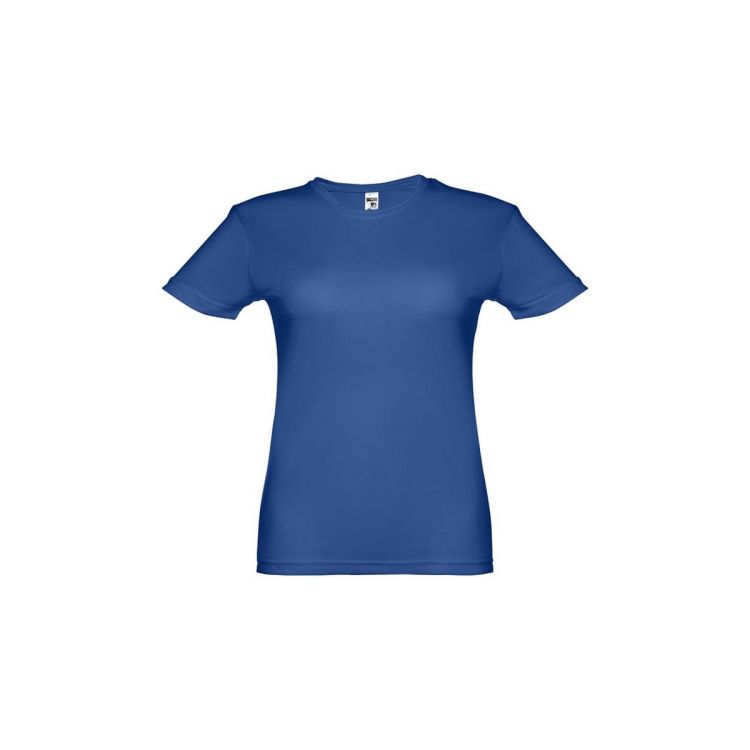Damen Sport T-Shirt aus 100% Strickjersey und Polyester (130g/m²), dieser Stoff ist bequem und atmungsaktiv. Dieses T-Shirt ist leicht tailliert, hat ein Verstärkungsband am Kragen und eine Doppelnaht an Ärmeln und Saum, in königsblau farbe