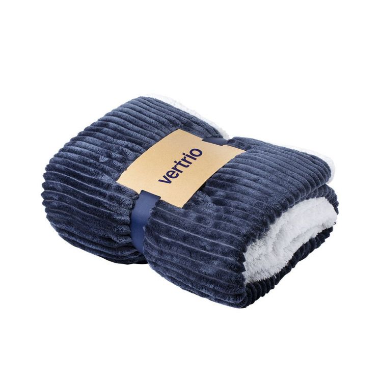 Weiche und warme Decke in einer Kombination aus Korallenfleece und Sherpa 440g/m2. In elegantem zweifarbigen Design, Größe 125x160cm. Einzeln verpackt mit passendem Farbband und einem Bogen aus Recyclingkarton zum einfachen Bedrucken.