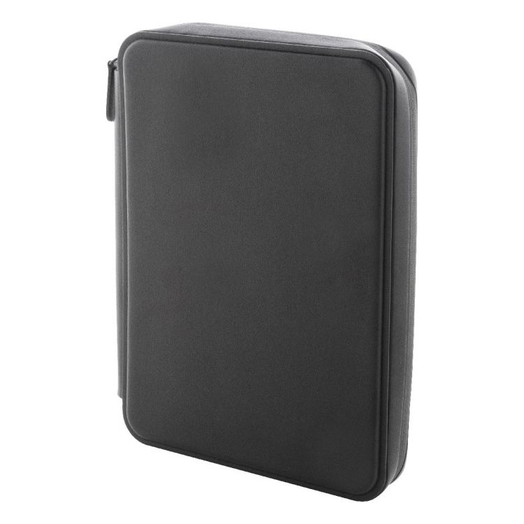 Hochwertige Dokumentenmappe mit Reißverschluss aus recyceltem PU-Leder, inklusive liniertem Notizblock mit 64 Blättern aus Recyclingpapier. Mit mehreren Innentaschen für Karten und Dokumente. A5-Format.