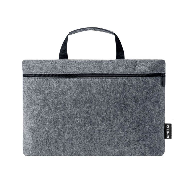 Dokumententasche aus strapazierfähigem RPET-Filz mit Melange-Effekt. Hauptfach mit Reißverschluss für Laptops bis zu 15" und kleines Innenfach. Mit passenden robusten Griffen mit schwarzen Details. RPET-Emblem auf dem Außenetikett.RPET-Filz ist das Ergebnis der Kombination des Recyclingprozesses von Kunststoffen mit der jahrtausendealten Technik der Filzherstellung. Das Ergebnis ist ein Öko-Trend-Material, das nicht nur aus recyceltem Material besteht, sondern auch wiederverwertbar ist. (grau farbe)