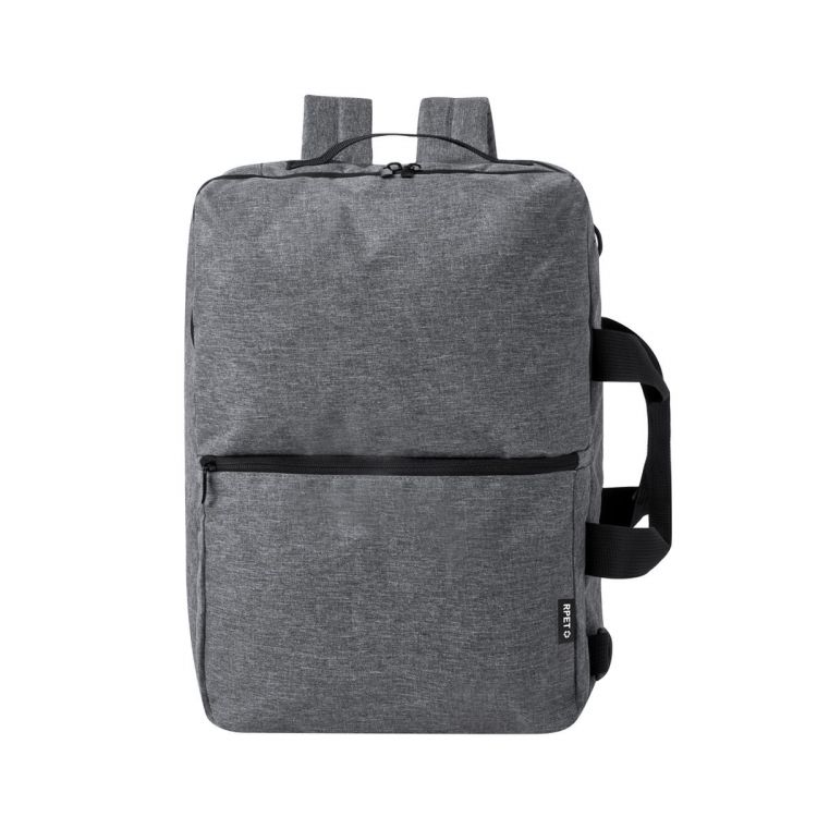 Dokumentenrucksack aus strapazierfähigem 600D RPET. Es verfügt über ein urbanes Design mit einer Mitteltasche mit Reißverschluss und Doppelschieber. Mit Innenpolsterung für Laptops bis 15 Zoll, einer zusätzlichen Tasche mit doppeltem Reißverschluss und einer Vordertasche. Die Schultergurte und der Rücken sind gepolstert und für mehr Komfort verstellbar. Es kann auf drei verschiedene Arten getragen werden: als Rucksack, mit gepolsterten Schultergurten; als Dokumentenhalter, mit gepolstertem Tragegriff; und als Umhängetasche mit langem, verstellbarem Schultergurt. Es ist in drei stylischen Farben erhältlich und wird edel in einer individuellen Recycled-Tasche präsentiert.