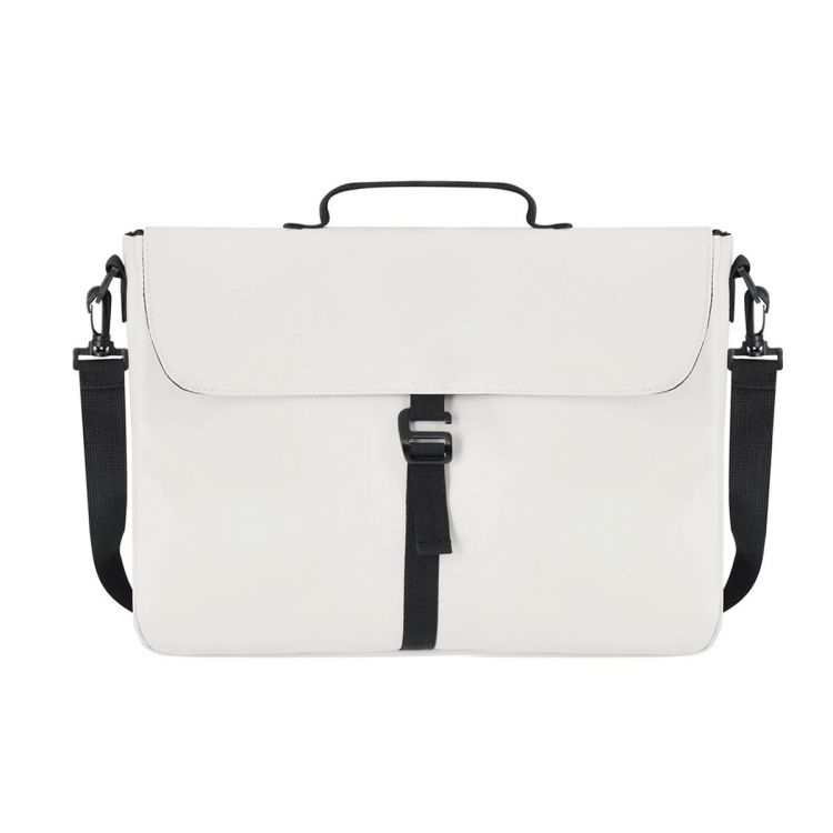 Weicher PU-Dokumentenhalter. Große Kapazität innen mit gepolstertem Fach für Laptops bis zu 15 Zoll. Mit Schnallenschließsystem. Inklusive abnehmbarem, gepolstertem Trageriemen. (beige farbe)