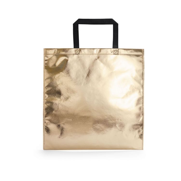 Laminierte Einkaufstasche aus Non-Woven in Metallic-Farbe mit kurzen Henkeln.